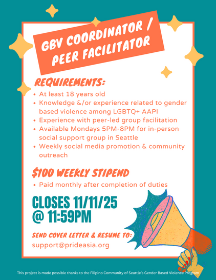 December 2024- Pride ASIA partners with the (FCS) Filipino Community of Seattle's anti-Gender Based violence referral collaboration and partnership.